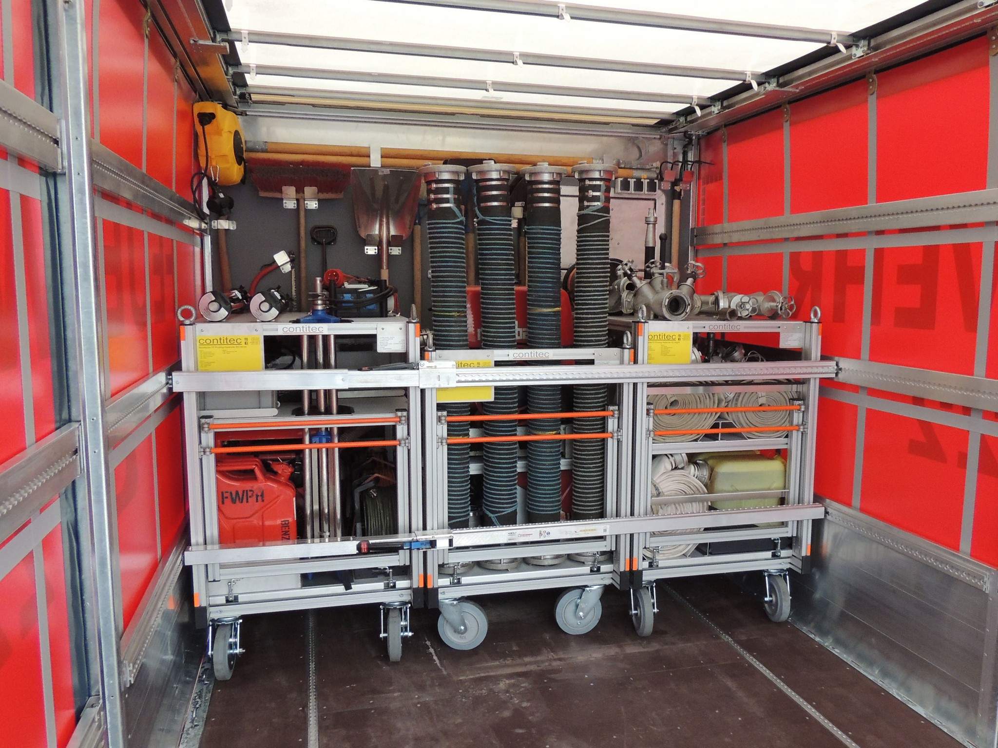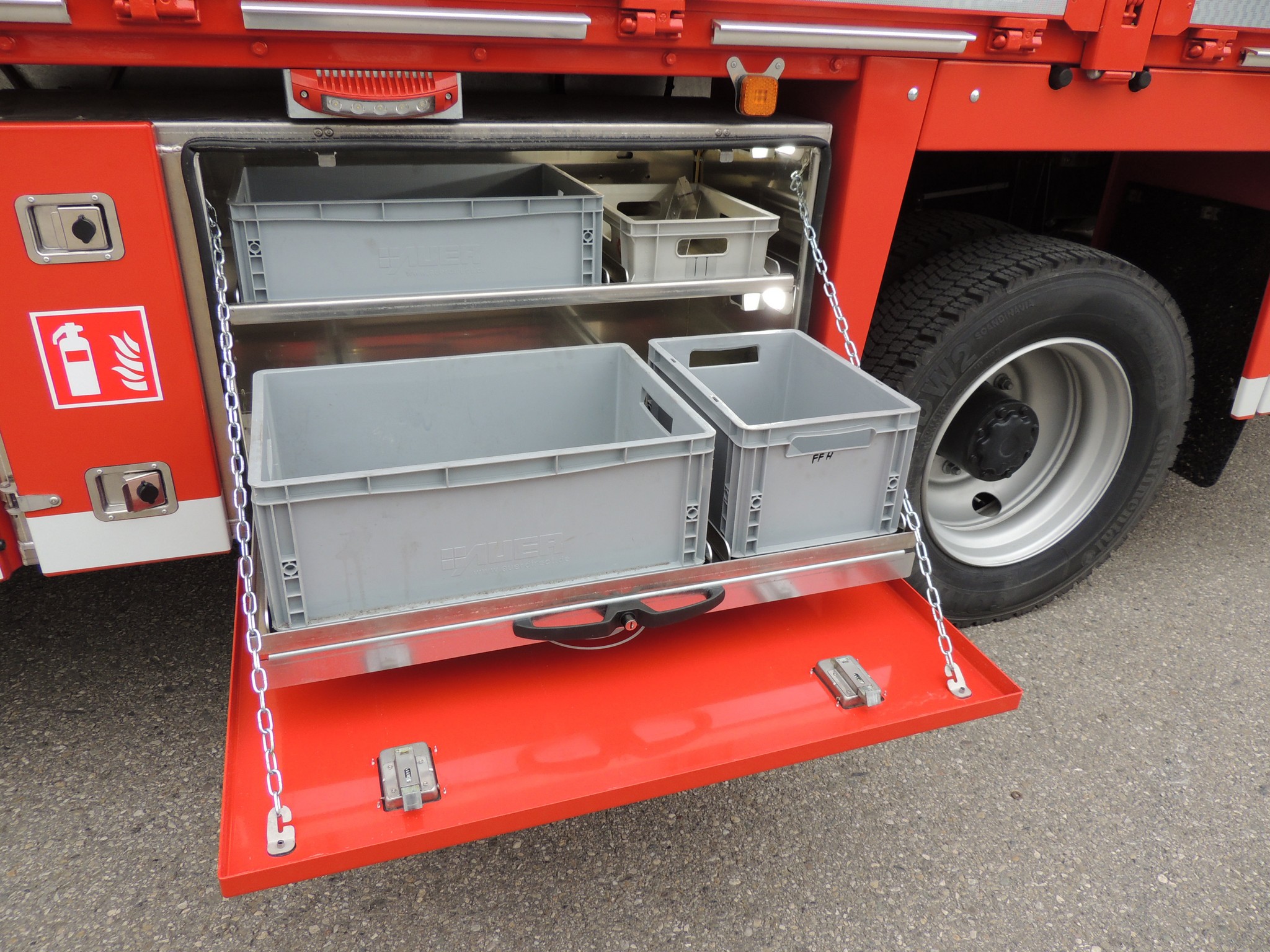 - Variabler Heckstauraum z.B. als Auszugsrahmen mit wechselbarer Ausrüstungslade oder Norm-Boxen
